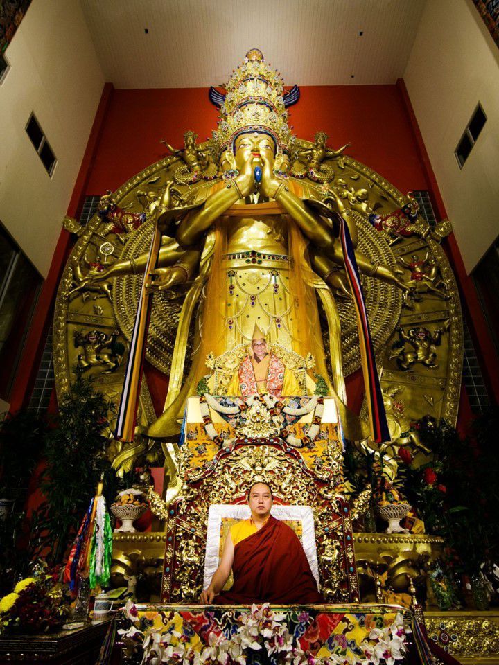 The rupa at Thekchen Choling was offered by a devotee who felt a special connection with Thousand-Armed Chenrezig. She sold off her jewellery collection to raise the funds needed to make the rupa, following deeply felt inspiration from Chenrezig. It was subsequently consecrated at the temple through the generosity of Sangyum Namdrol Lhamo.