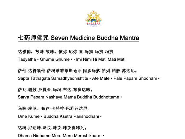 Seven Medicine Buddha Mantra (Eng & Chi)